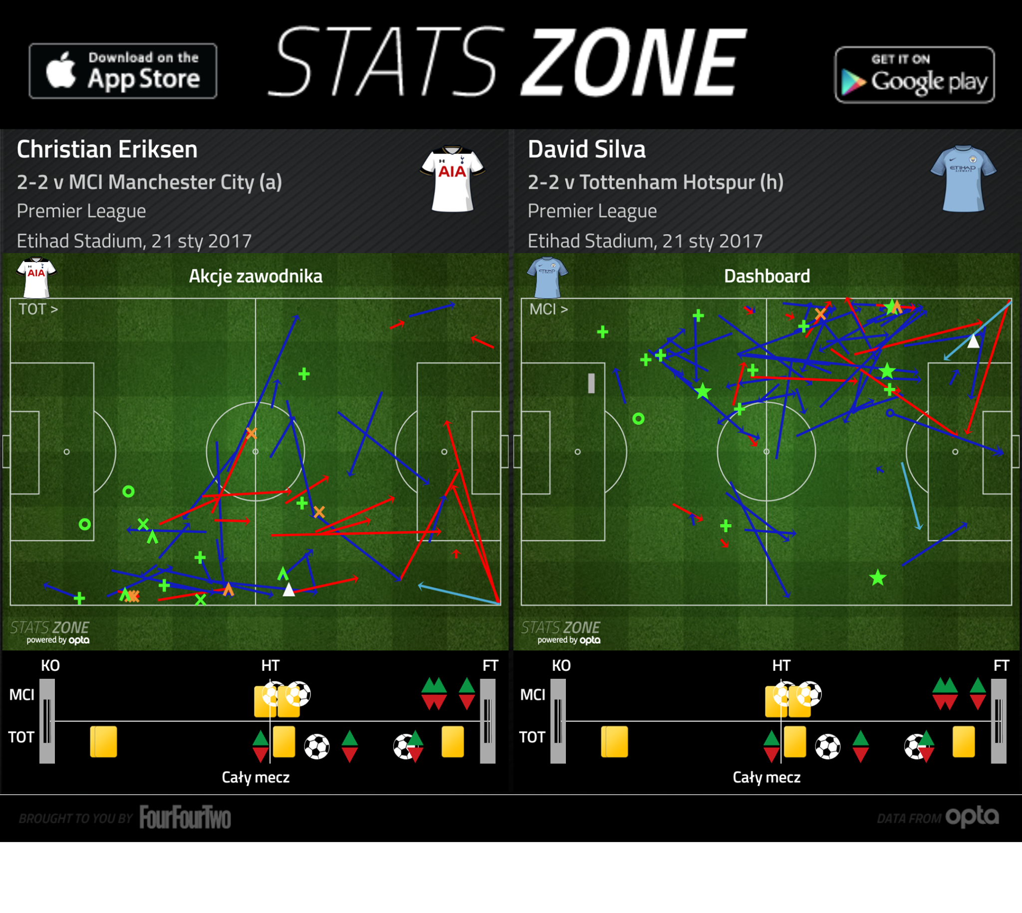 W pierwszej połowie wyglądało na to, że Guardiola ma rację. Tottenham nie mógł grać skrzydłami. Z początku próbował środkiem, gdzie jednak dryblingi Dembele były tyleż efektowne, co ostatecznie bezproduktywne, a potem został zdominowany i zepchnięty do defensywy w takiej skali po raz pierwszy w sezonie (o meczu tych drużyn na White Hart Lane Guardiola mówił, że był jedynym, w którym jego zespół wypadł gorzej od rywali – tym razem frazę musiał powtórzyć Pochettino). Lloris pewnie bronił strzały Silvy i Aguero, a dwa wybitne wślizgi Alderweirelda i Rose’a pozbawiły Zabaletę i Sterlinga niemal pewnych goli. Zaledwie 34 procent czasu przy piłce, tylko jeden kontakt z piłką w polu karnym rywala i żadnego strzału na bramkę – od takich statystyk Tottenhamu za kadencji tego trenera zdążyliśmy się odzwyczaić. O wpływie na grę świetnego w poprzednich meczach Eriksena najlepiej powie obrazek zestawiający go z Silvą; to Hiszpan dzielił i rządził między liniami przeciwników.