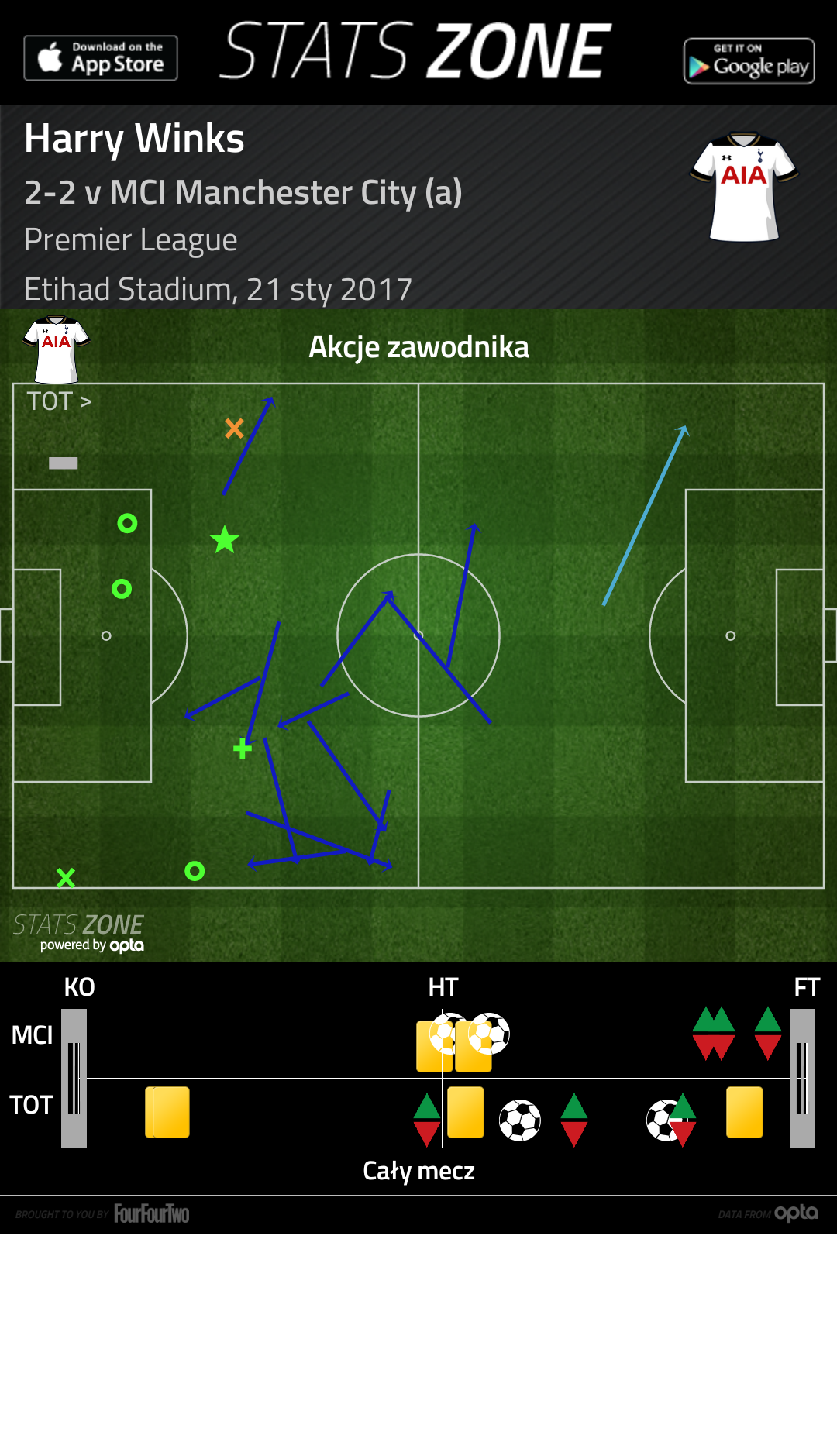 Nie zmienia to faktu, że goście nawet przy stanie 2:0 i nawet po kontuzji najlepszego obrońcy ligi, Alderweirelda (wczoraj znów rzucał te swoje znakomite, w stylu samego Andrei Pirlo, długie piłki na skrzydła bądź do wbiegającego w pole karne Alliego) nie wyglądali na ludzi, którzy gotowi są rzucić ręcznik, a po doprowadzeniu do wyrównania wciąż grali ofensywnie. Niewątpliwie pomogły w tym zmiany, dokonywane przez Mauricio Pochettino – nawet kiedy Alderweireld schodził z kontuzją, Argentyńczyk nie sięgnął po siedzącego na ławce młodego stopera Cartera-Vickersa, ani po umiejącego grać także na środku obrony Bena Daviesa, tylko po Harry’ego Winksa – we własne pole karne cofnął się Wanyama, a Winks uspokoił grę w drugiej linii (zobaczcie obrazek z jego podaniami; nie stracił piłki ani razu).